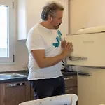 В апартаментах есть оснащённая всем необходимым кухня с электрочайником, холодильником и духовкой.